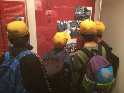 ピース大阪では、学校で平和学習について学んでいることもあり、子どもたちは真剣な表情で見学している様子がありました。