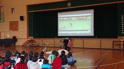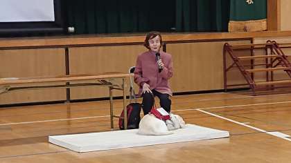 今日、2,3時間目にもうどう犬について出前授業を行いました。