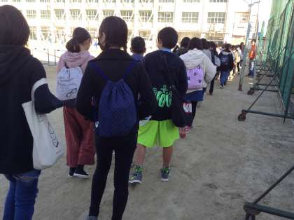 住之江中学校の先生方や生徒たちが案内してくださり、子どもたちは楽しんで見学していました。