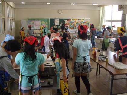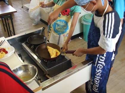 今日は3時間目と4時間目の時間に、6年1組が調理実習を行いました。たまごを使ったレシピで、みんなそれぞれ協力して一生懸命に実習に取り組んでいました。