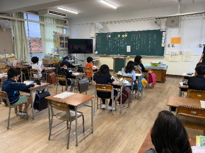今日の第2回目の「臨時登校日」の様子です。下記の写真は、上(4年生)、中(5年生)、下(6年生)の教室の様子です。