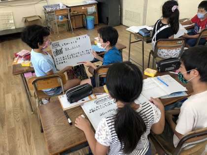 9月18日(金)算数科の授業は、「あまりのあるわり算」に入りました。あまりのないわり算の時と同じように、図や九九を使ったらできるかどうか学び合っています。友達の説明を一生懸命聞く、真剣な姿をご覧ください。