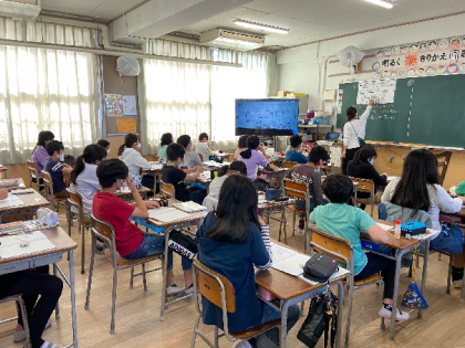 下記の写真は、午後(5時間目)の5年生の授業の様子です。理科や算数科、音楽科の学習をしています。