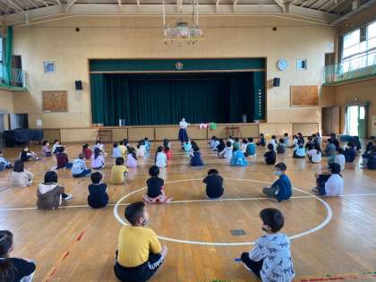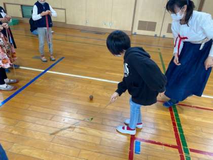 16日(月)、2年生がソンセンニㇺに韓国の遊びを教えていただきました。子ども達は、事前に韓国について学習していたので、今日の活動をとても楽しみにしていました。教えていただいた遊びは、「ユンノリ(すごろく)」「ペンイ(こま)」「チェギチャギ(足で蹴り上げる遊び道具)」「コンギ(おはじき)」の4種類でした。「日本のこまより簡単だ」「遊びにも違いがあるんだ」「ソンセンニㇺにまた来てほしい」など、韓国のことをもっと知りたいという気持ちが強くなりました。