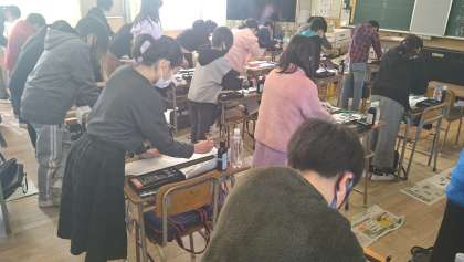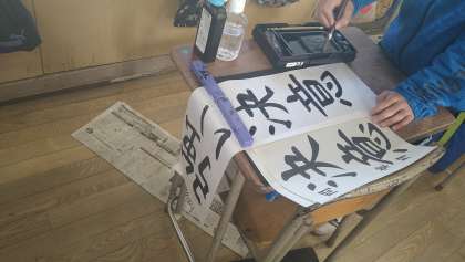 先週1組、今週水曜日に3組と各クラスで書き初めに取り組みました。