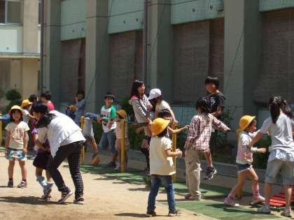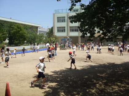 安立小学校では、毎週金曜日の2時間目と3時間目の間の20分休憩時間に、兄弟学年で遊ぶ「なかよしタイム」を行っています。なかよしタイム中は、1年生と6年生、2年生と4年生、3年生と5年生がペアになって、みんな思い思いの遊びをして楽しんでいます。