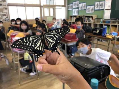 5月18日(水)5年2組の教室で飼育している「アゲハチョウ」の蛹が、3時間目の授業中に羽化しました。「蛹」が羽化し、「蝶」になる感動の瞬間を目の当たりにした子どもたちは、「はじめて見た!」、「すごすぎる!」、「第一発見者は、ぼくやで!」と、大興奮でした。1組、3組でも飼育しているので、今後も楽しみです。