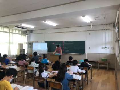 4年生では、算数科の授業を2つに分けて学習しています。一つのクラスを2つに分けて、折れ線グラフの書き方や読み方を学んでいます。