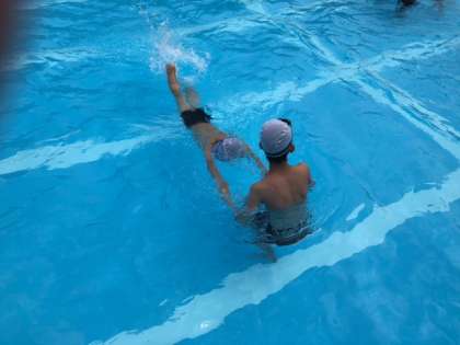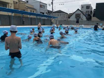 全学年のプール開きが無事終わりました。1・2年生は、初めての、3〜6年生は2年ぶりのプールでの活動となりましたが、どの学年も楽しく取り組むことができました。昨日は、1年生のプール開きがありました。小学校の大きなプールに期待と不安の表情を浮かべていた1年生でしたが、頼もしい6年生が一緒に入ってくれたので、思う存分水遊びを楽しむことができました。1年生と6年生ともに最高の笑顔が見られました。各学年とも、あと2回ずつプール水泳・水遊びを予定しています。2年前までのようにプールに歓声があがることがないのは少し寂しいですが、プールでの活動を安全に楽しんでほしいと思います。