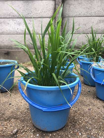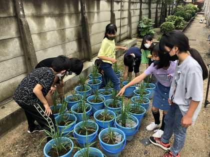 7月1日(木) 子どもたちが、休み時間に総合的な学習の時間で育てている「バケツ稲」を観察に行っています。田植えをしてから半月が過ぎ、すくすくと生長している稲もあれば、元気がなくなってきている稲もあります。一人一人自分の「バケツ稲」を大切に育て、大きく生長させていってほしいです。
