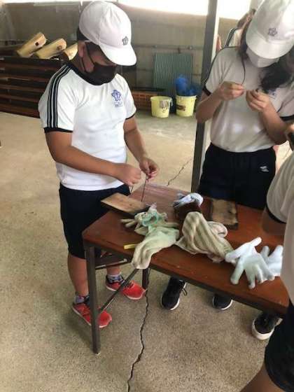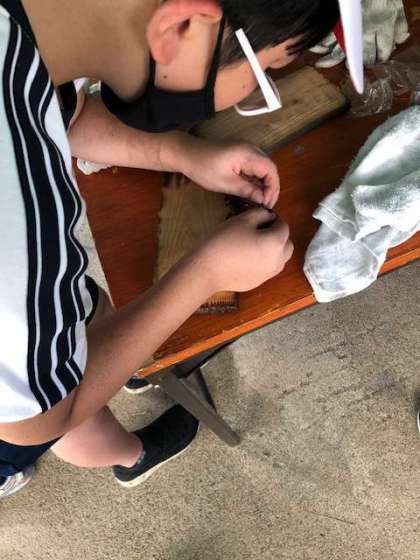 磨いた後の焼き板にキートンをつけます。絵付けは、明日です。出来栄えは、明日の絵付けにかかってきます。