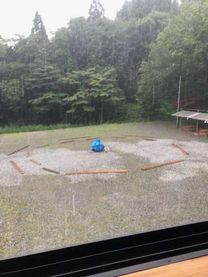 突然の大雨。キャンプファイヤーがどうなるのか?