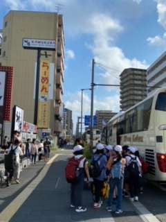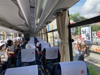 5年生がバスに乗り込み、ハチ高原へ向けて出発しました。