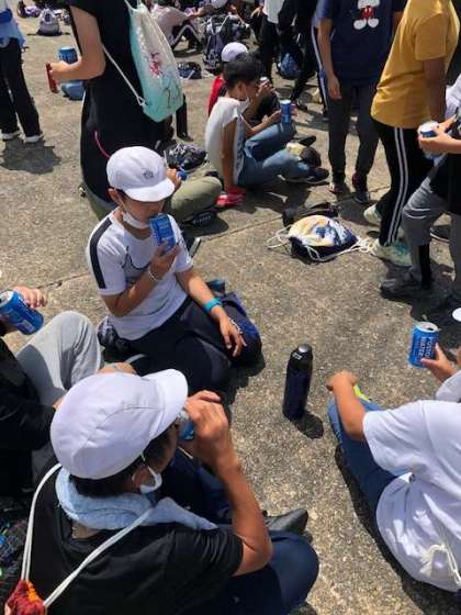 宿舎に到着。山登りの後のスポーツドリンクは格別の味です。