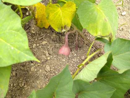 しゃしんは、はれた日にとったさつまいものようすです。夏休み中も、さつまいもはぐんぐん育っています。土から見えているさつまいもを見て、わくわくが止まりません。さつまいもをしゅうかくする日が楽しみですね。