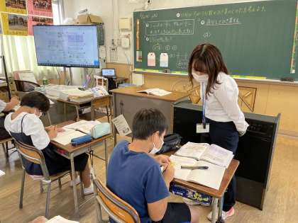 9月30日(木) 5年1組で算数科「分数のたし算・ひき算」の研究授業を行いました。いつもより多くの教師が教室に来たこともあって、子どもたちは、少し緊張しながらも一生懸命学習に取り組んでいました。職員研修を兼ねていたこともあり、教師も大変いい勉強になりました。