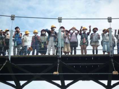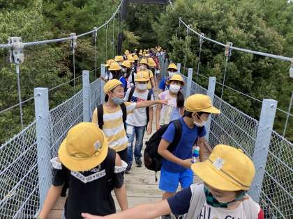 公園内では、秋の動植物を観察するのに、グループで散策したり、みんなで大きなつり橋を渡ったりなどの活動を行いました。楽しみにしていたお弁当タイムもコロナ対策に気をつけながら、友達と仲良く食べる姿が見られました。また、子どもたちは大きな長いすべり台に興味津々で、思いっきり体を動かして遊びました。