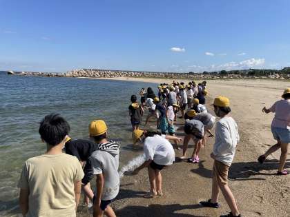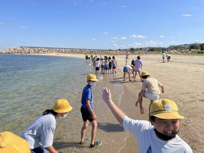 10月14日(木) 5年生は、秋の遠足で「せんなん里海公園」に行ってきました!ひんやり気持ちの良い海を散策したり、愛情たっぷりのお弁当をみんなで食べたり、驚くほど大きな遊具を楽しんだりしました。コロナで校外学習に行けていなかった分、久しぶりに思いきり楽しんできました。