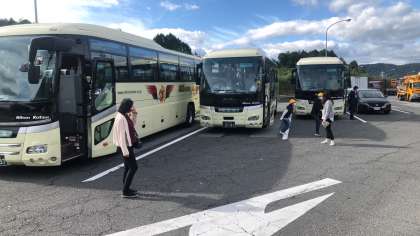 13時40分、嬉野PAにてトイレ休憩です。みんな元気です。