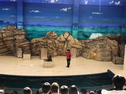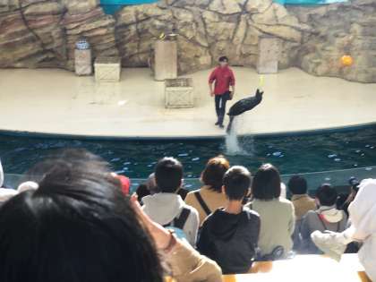 アシカショーが始まりました。安立小の観覧者は、少なめです。みんな、どこで楽しんでいるのかな?