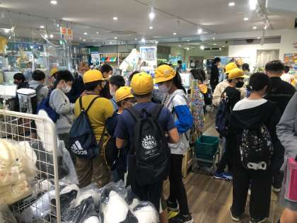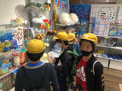 たくさんの子どもたちが、みやげ物を買い求めてショップに入っていました。