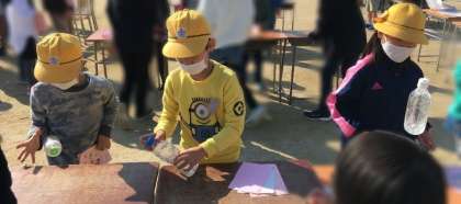はじめてのワイワイまつりで、2年生は4年生と一緒にお店を回りました。