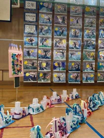 11月25日(木)〜27日(土)の3日間作品展を開催しました。学校のみんなや保護者の方々に見てもらうために力を入れて作った作品ばかりで、講堂が美術館のような素敵な空間になりました。一人一人のがんばりが集まるとより大きな力になることを実感できました。この作品展で得た自信をこれからの学校生活にいかしてほしいと思います。