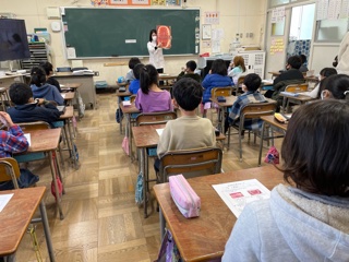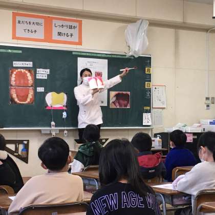 12月3日(金)に歯科衛生士の方に来ていただき歯磨きの仕方についてご指導していただきました。歯のどんなところに歯垢が付きやすいのかを教えていただき、DVDを見たり歯を磨く真似をしながら丁寧な歯の磨き方を学びました。子どもたちは「ゴシゴシ歯磨きはしたらあかんな。」「やさしく歯磨きしよう。」とこれからの歯磨きの仕方を意識しているようでした。たくさん食べて栄養をとり、しっかり磨いて虫歯を防ぎましょう。