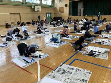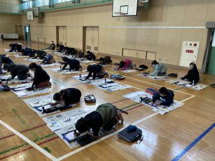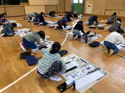 1月17日(月)、4年生は体育館で書き初めを行いました。「美しい空」という字に挑戦しました。漢字やひらがなが合わさった文字のバランスに苦戦する子どもたちの姿が見られましたが、一字一字集中し、丁寧に書くことができました。書き終わった後には、「緊張したけど、頑張れた!」「思うように書けた!」など、達成感や満足感を味わっていました。