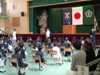 お子様にとって大きな節目の「小学校入学式」。新型コロナウイルス感染症対策で規模縮小、国歌・校歌斉唱なし(歌唱入りCDで演奏しました)、時間短縮等の制限のもとでしたが、保護者の皆さまをはじめ、地域関係者の皆さまのご理解・ご協力により予定通りに実施することができました。