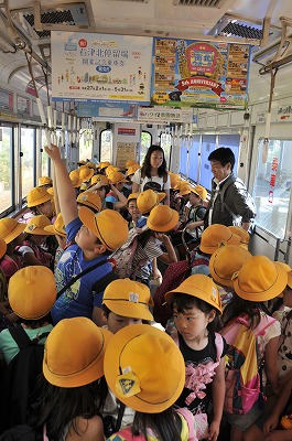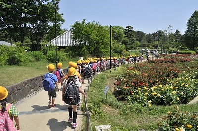 5月14日(木)に1年生は、ちんちん電車に乗って、浜寺公園に行きました。遊具でいっぱい遊んで、バラの花を見て友だちと楽しく過ごしました。