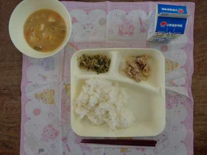 ♦ぶたにくのしょうがやき♦みそしる♦じゃこピーマン♦ごはん♦牛乳
