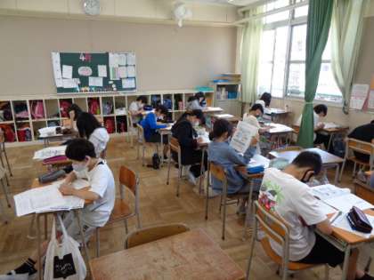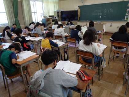 6年生の子どもたちはみんな、真剣なまなざしで取り組んでいました。