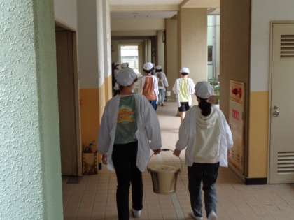 牛乳や食器、重いおかずなどは、二人で運びましょう。