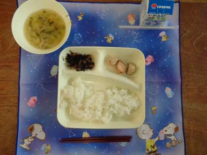 (今日は、にんじんとうすあげが入った「ひじきのいため煮」でした。)