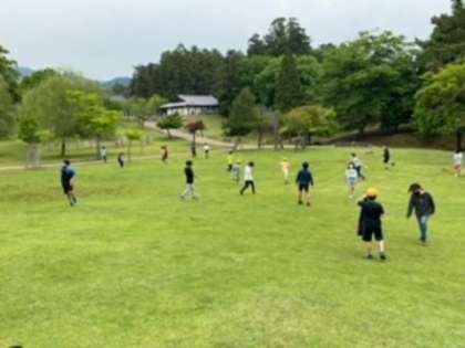 昼食後、「おにごっこ」をしました。シカのふんを気にしながらも、元気よく駆け回っていました。