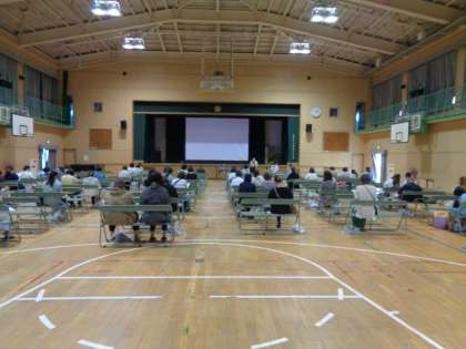説明会の場所を当日体育館に変更いたしましたが、皆さまのご理解・ご協力を得て、予定通りすることができました。ありがとうございました。PTA役員・実行委員の皆さまには受付等お手伝いいただき、重ねてお礼申しあげます。