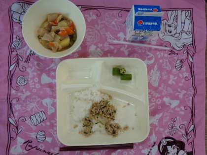 ♦ぶたにくとじゃがいものにもの♦オクラのうめふうみ♦ツナっぱいため♦ごはん♦ぎゅうにゅう