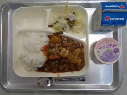 ♦ビーフカレーライス(米粉)♦やさいのピクルス♦ぶどうゼリー♦ぎゅうにゅう
