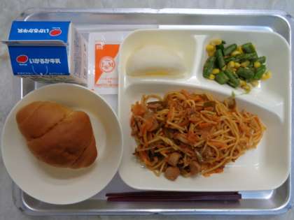♦イタリアンスパゲッティ♦グリーンアスパラガスのサラダ[ノンエッグドレッシング]♦なし(ほうすい)♦こくとうパン(小)♦ぎゅうにゅう