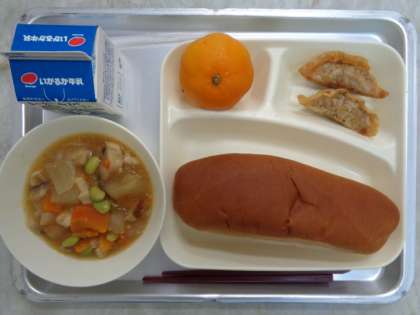 ♦あげぎょうざ♦けいにくととうがんのちゅうかに♦れいとうみかん♦こくとうパン♦ぎゅうにゅう