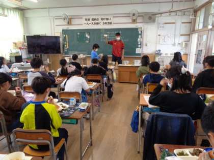 ほたて貝には大きな貝柱があり、給食ではこの貝柱を使っています。