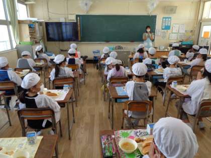 給食では、着色料(食品に色をつけるもの)を使っていない、山形県産のさくらんぼの缶づめが登場しました。