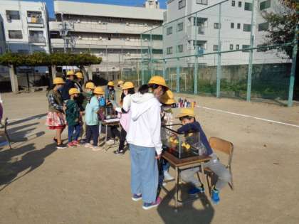 内容:水槽の水の中に1円玉をおとしてカップの中に入れる。