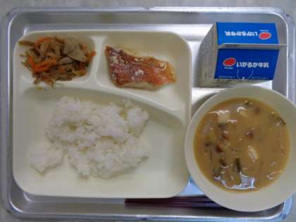 ♦あかうおのしょうゆだれかけ♦なめこのみそしる♦きんぴらごぼう♦ごはん♦ぎゅうにゅう