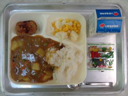♦ハンバーグカレーライス♦カリフラワーピクルス♦まめこんぶ♦ぎゅうにゅう