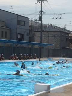 今日は、昨日までの2日間とうってかわり、とてもよい天気に恵まれたので、たくさんの子どもたちがプール開放に参加しました。夏休みらしい、学校の様子でした。