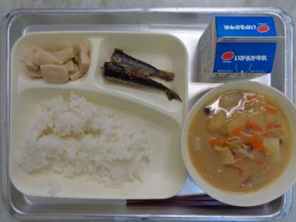 ♦いわしのしょうがに♦みそしる♦こうやどうふのにもの♦ごはん♦ぎゅうにゅう