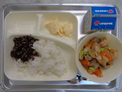 ♦たまごどうふ♦ひとくちがんもとやさいのにもの♦さかなひじきそぼろ♦ごはん♦ぎゅうにゅう