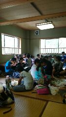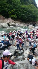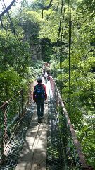 つり橋を渡り移動中です。昼食後少しだけ水遊びをして、また歩きました。みんな元気です。